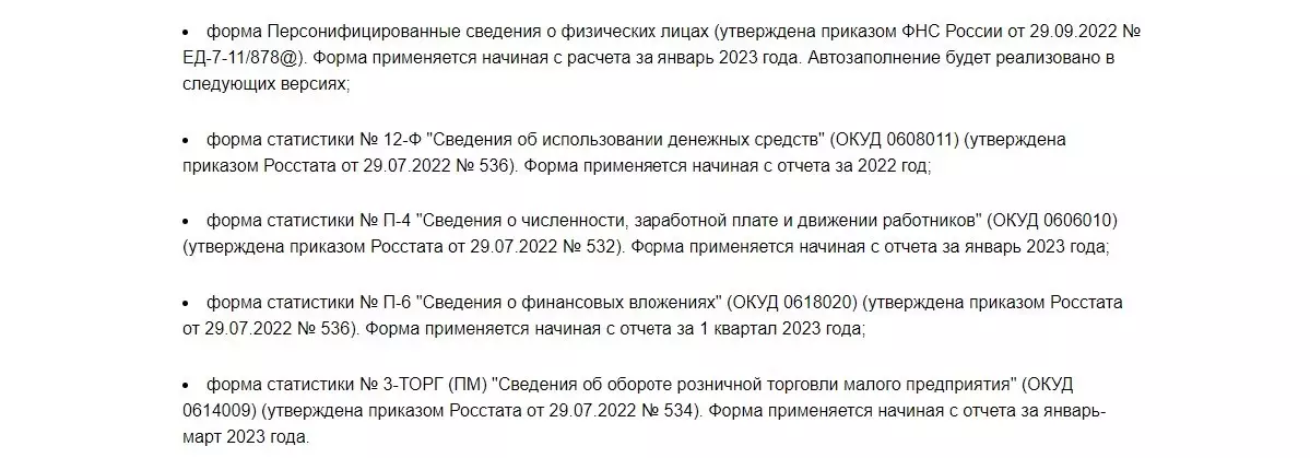 Формы регламентированной отчетности, которые были добавлены в обновленную версию прикладного решения, представлены ниже: