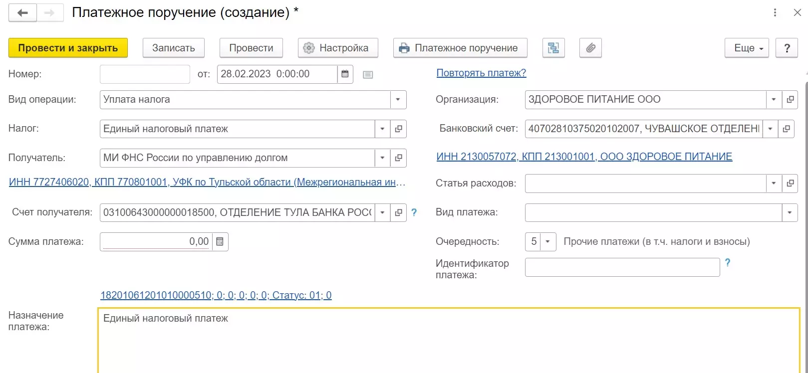 - Заполнение платежного поручения на ЕНП с 11.02.2023