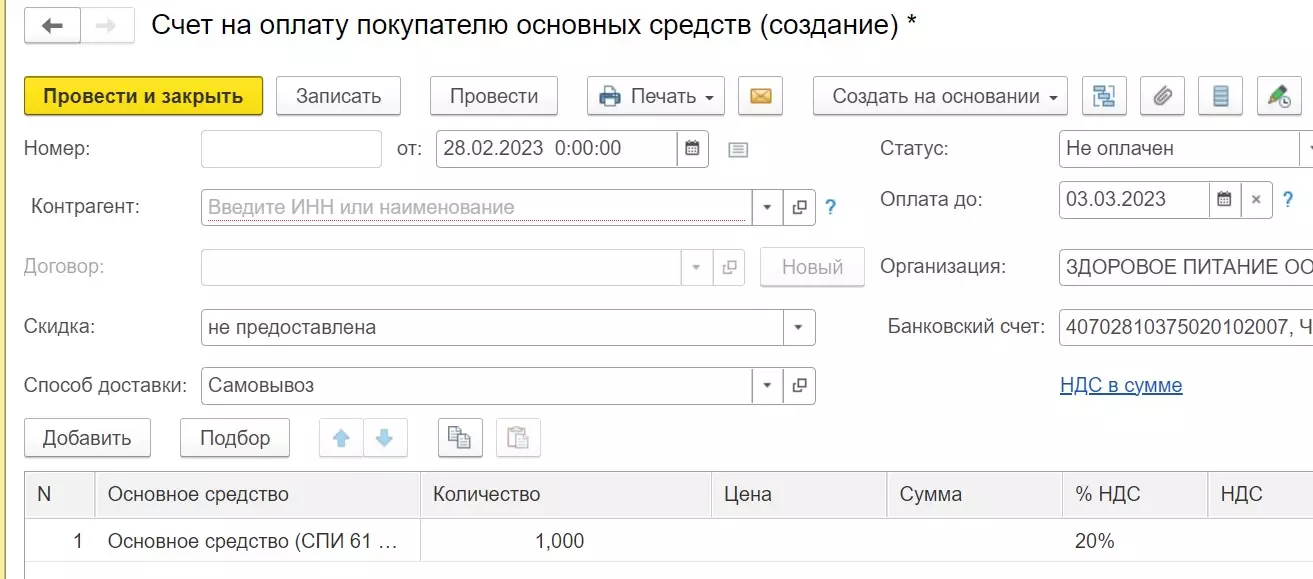 Счет покупателю при продаже ОС в релизе 3.0.131