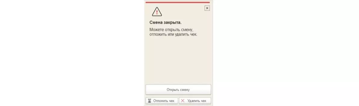Добавлена возможность автоматического открытия смены. При пробитии чека 1С предложит либо открыть смену при пробитии чека, либо отложить или удалить чек.