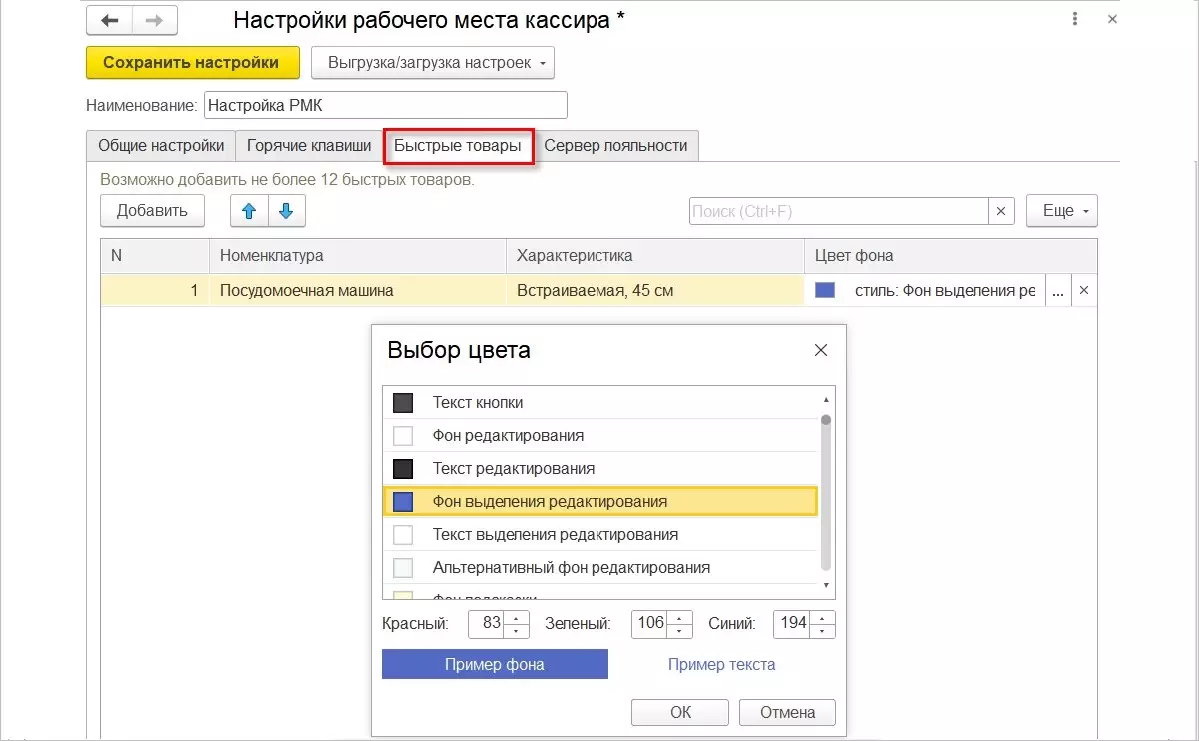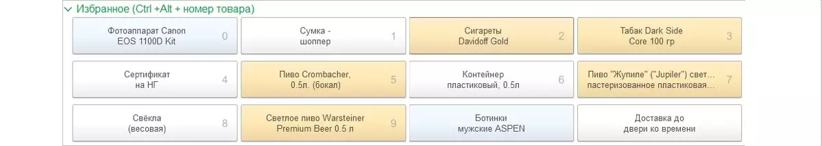 Добавлена панель быстрых товаров. На ней цветом выделены часто продаваемые товары, а также к ним можно привязать горячие клавиши.
