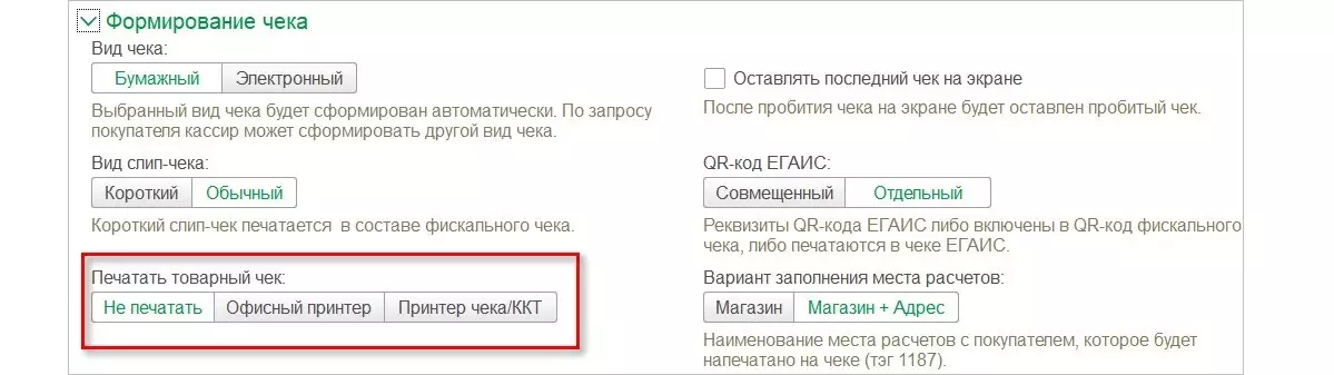 В настройках РМК добавлен функционал печати разнообразной печати чека. Теперь можно выбрать «Не печатать/Офисный принтер/Принтер чека/ККТ».