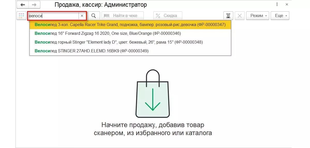 В Рабочем месте кассира также появилась строка для быстрого поиска товара.