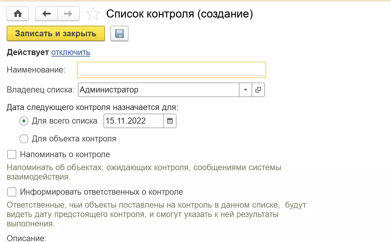 Добавлена возможность напоминать о контроле через систему взаимодействия.