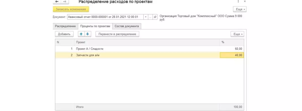 Когда в документе имеется информация, которую нужно отнести к разным проектам, то в определенных моментах ее можно распределить. Для этого используется внешняя обработка заполнения, которая открывается из формы документа или списка документов. Распределению подлежат: