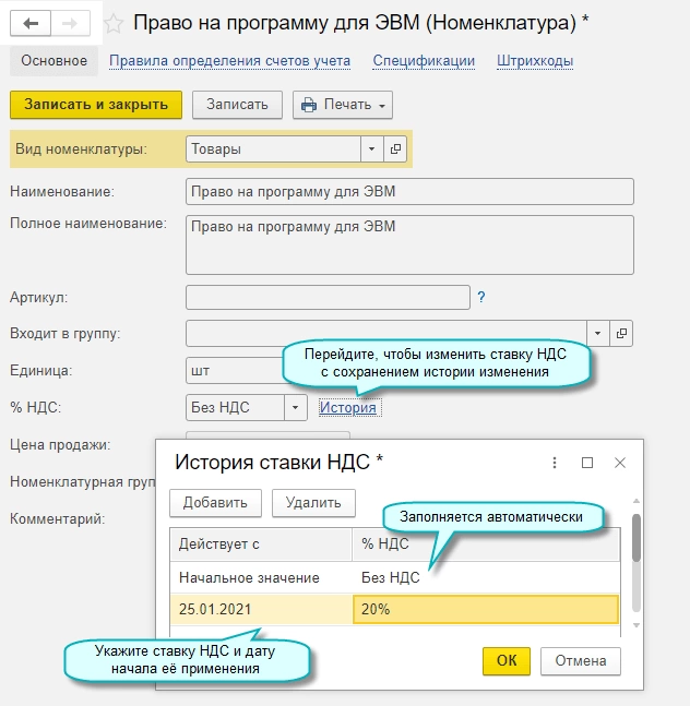 - Теперь можно указывать ту ставку НДС, которая была актуальна на дату выставления документа.