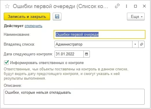 - Включается функциональной опцией «Использовать контроль объектов» в группе «Контроль объектов» раздела «Администрирование - Общие настройки».