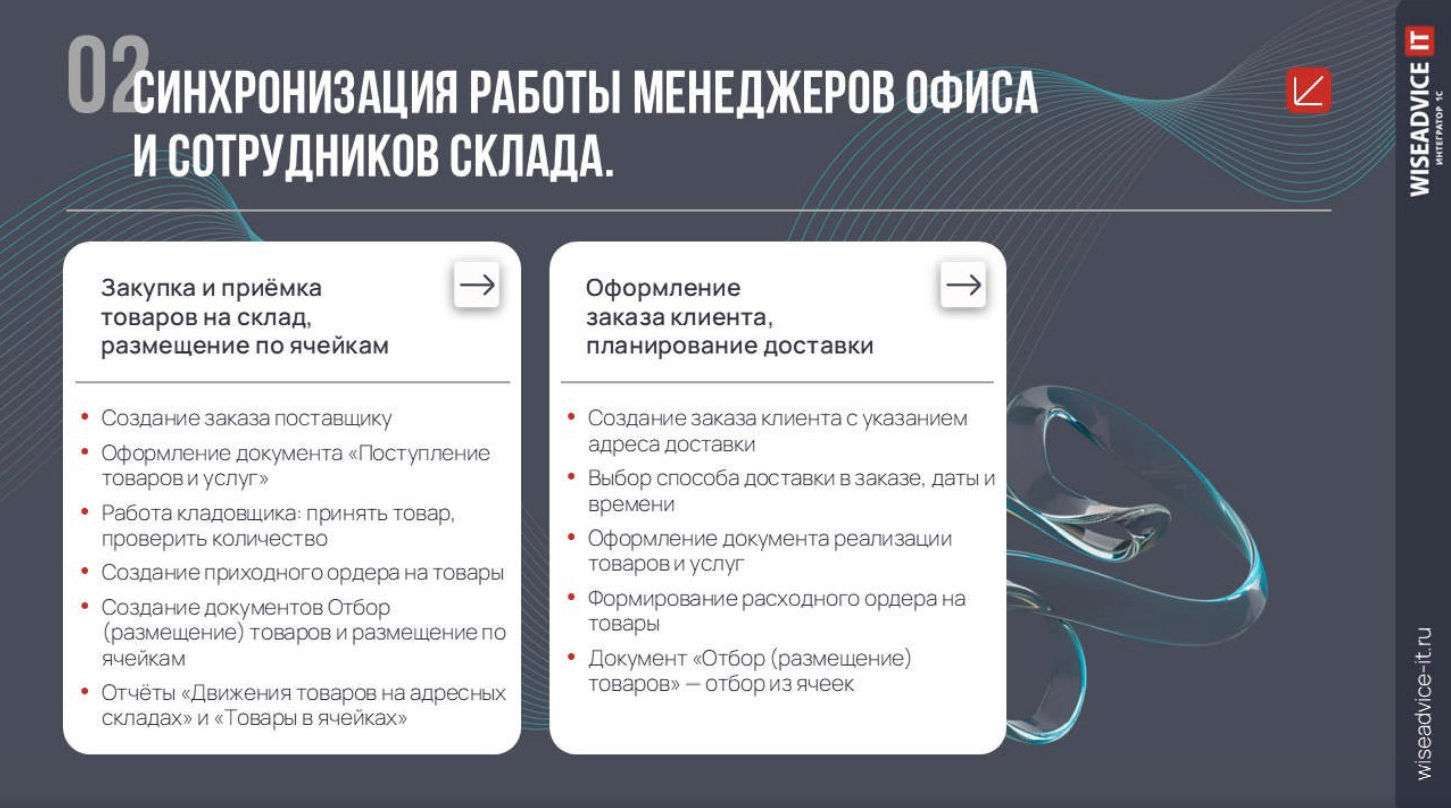 Как 1С:Управление торговлей помогает управлять логистикой от склада до потребителя в одном окне и экономить часы рабочего времени ежедневно! Рассказывают эксперты WiseAdvice-IT.