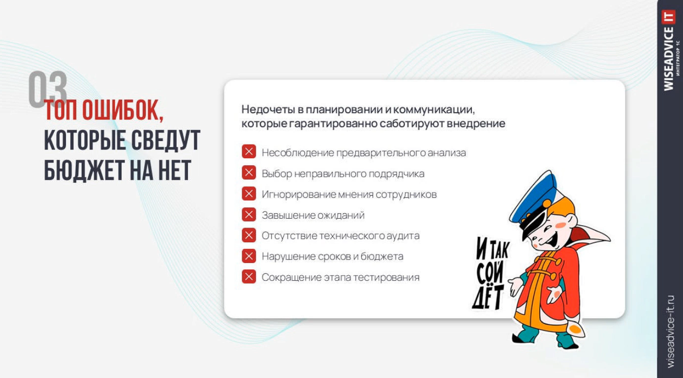 - Анна Харитонова, аналитик проектного департамента WiseAdvice-IT. Эксперт по решению 1С:ЗУП 3.1 КОРП. Опыт внедрения и сопровождения программных продуктов линейки ЗУП более 9 лет. Специализируется на анализе бизнес-процессов в области кадрового учета и расчета заработной платы, разработки интеграций со сторонними продуктами, а также обучении пользователей эффективной работе с системой.