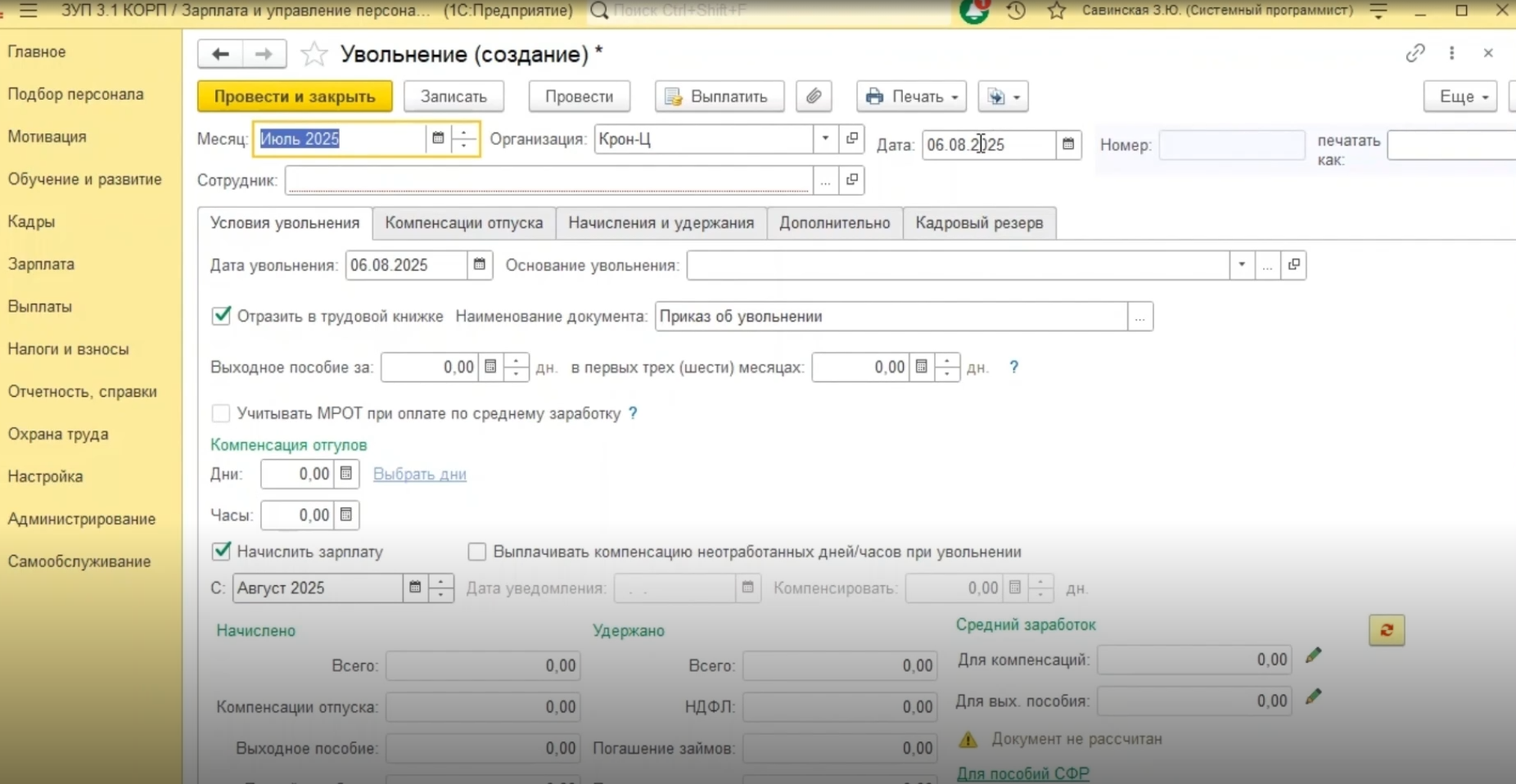 Как провести увольнение сотрудника в 1С:ЗУП. Эксперт WiseAdvice-IT подробно рассказывает, как оформить увольнение в 1С:Запрлата и управление персоналом версии 3.1 КОРП за 8 шагов.