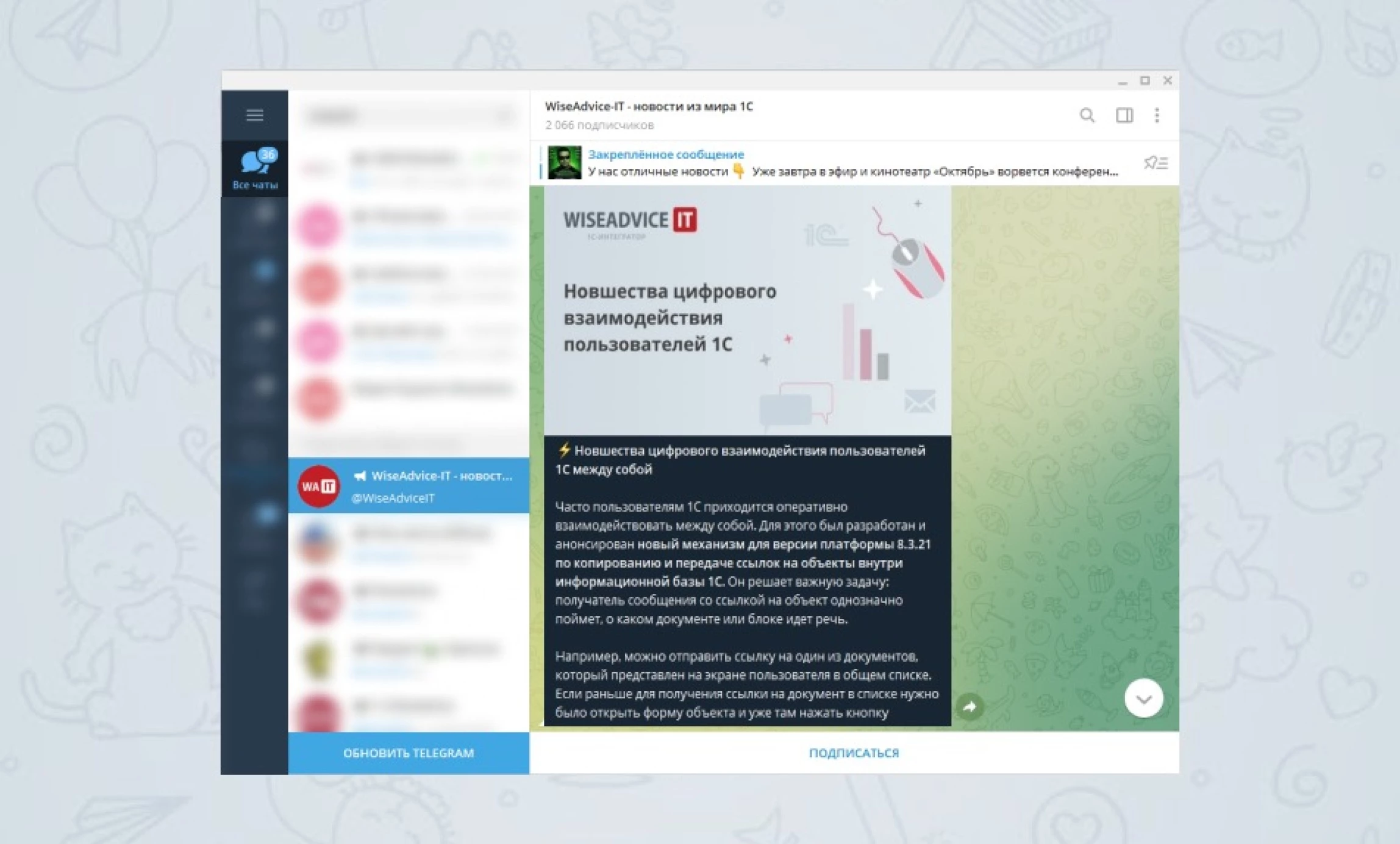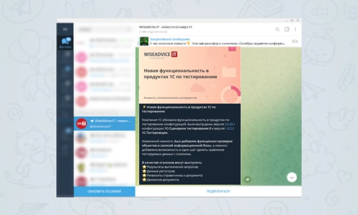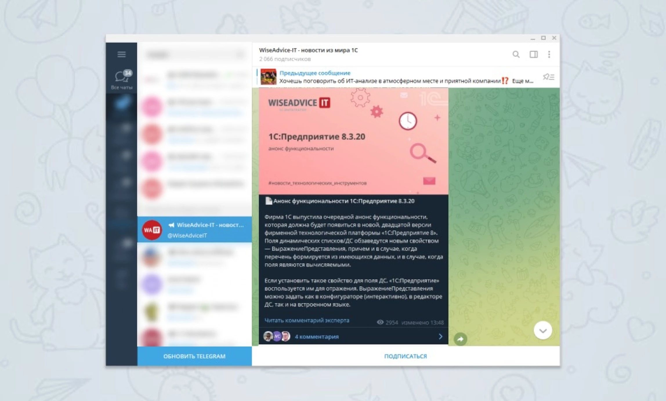 Новости из мира 1С и IT-сферы, информация о выходе новых релизов технологических инструментов и комментарии экспертов WiseAdvice-IT. Присоединяйтесь!