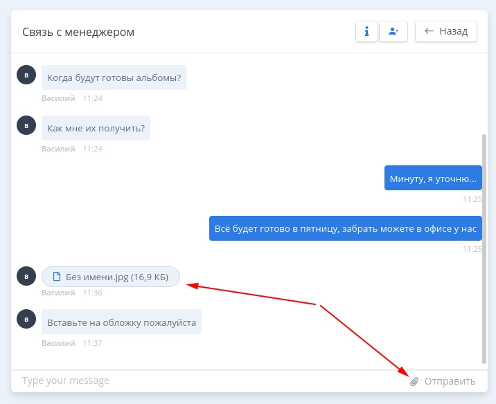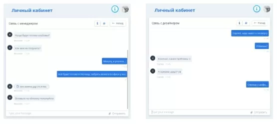 Автоматическое создание учетной записи для вашего клиента, где он сможет удобно оперировать всеми заказами. Личный кабинет фиксирует всю переписку с клиентом, доступную в любой момент. Вы всегда сможете найти необходимую информацию