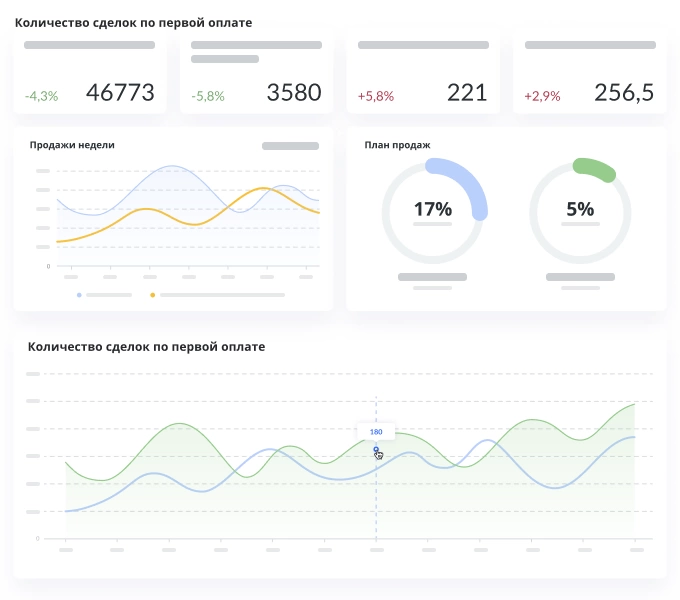 Смотрите статистику по любым срезам и зависимостям с возможностью детализации по филиалам и даже конкретным сотрудникам