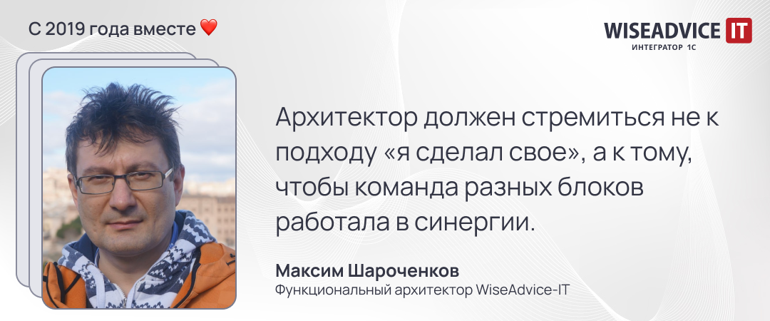 — Я пришел в WiseAdvice-IT от другого интегратора, а до этого работал в автоматизации машиностроительного предприятия, и автоматизировали мы тогда не на 1С. Поэтому у меня уже был серьезный опыт именно в бизнесовой автоматизации, в понимании процессов, требований, логики работы сложных компаний.
