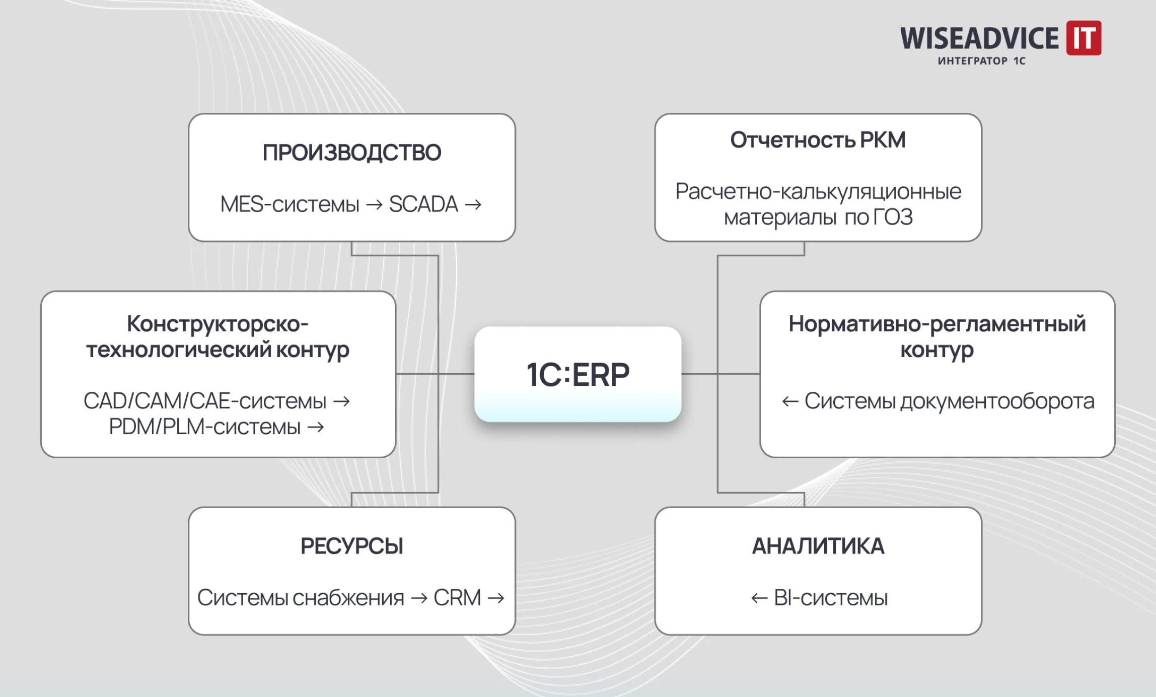 Закон устанавлиет регламент на всех этапах — от ценообразования до сдачи готовой продукции, создавая замкнутую систему контроля над оборонным заказом. Специалисты WiseAdvice-IT знают, как и в каких программных решениях на базе 1С:Предприятие обеспечить соблюдение всех требований государства.